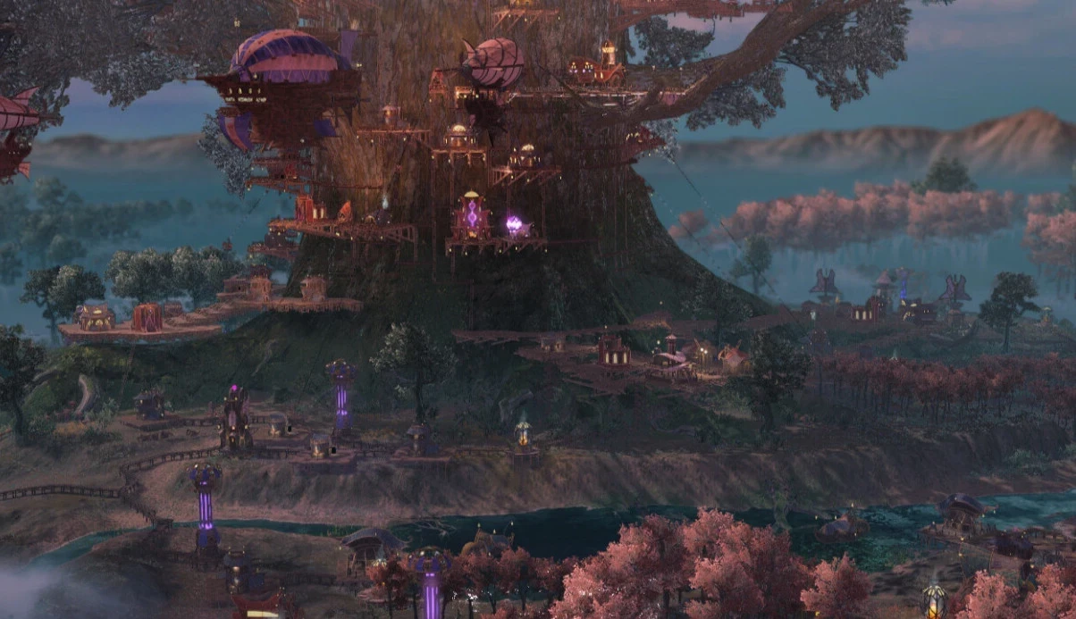 И её наглядно демонстрируют в трейлере. Масштабный город будет расположен на ветвях гигантского дерева — постепенно инфраструктура окажется всё выше и выше. Всё это выглядит красиво, однако в таких условиях предстоит бороться с недостатком ресурсов. Особое внимание уделяется огню и свету, которые помогают защищать поселение от всепоглощающего опасного тумана.