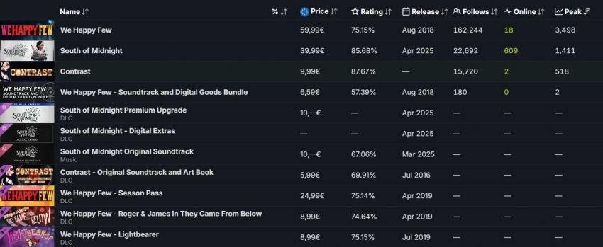 До показателя в своё время раскритикованной We Happy Few, предыдущей игры Compulsion Games, ей тоже далековато — её пиковый онлайн составил 3 498 игроков одновременно.