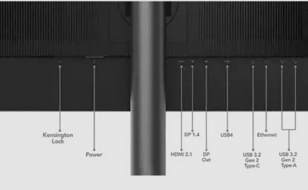 В набор внешних разъёмов новинок входят по одному порту USB4 (Type-C) с поддержкой альтернативного режима DisplayPort и зарядки мощностью 140 Вт, по два HDMI 2.1, а также по одному входу и выходу DisplayPort 1.4. Также в наличии имеются по одному входному USB Type-C 3.2 Gen2, одному выходному USB Type-C 3.2 Gen2 с возможностью передачи 15 Вт мощности на внешнее устройство, по четыре USB Type-A 3.2 Gen2, по одному гигабитному сетевому адаптеру и 3,5-мм комбинированному аудиовыходу. Оба дисплея также оснащены KVM-переключателями, позволяющими работать с двумя источниками видеосигнала одним набором мыши и клавиатуры.