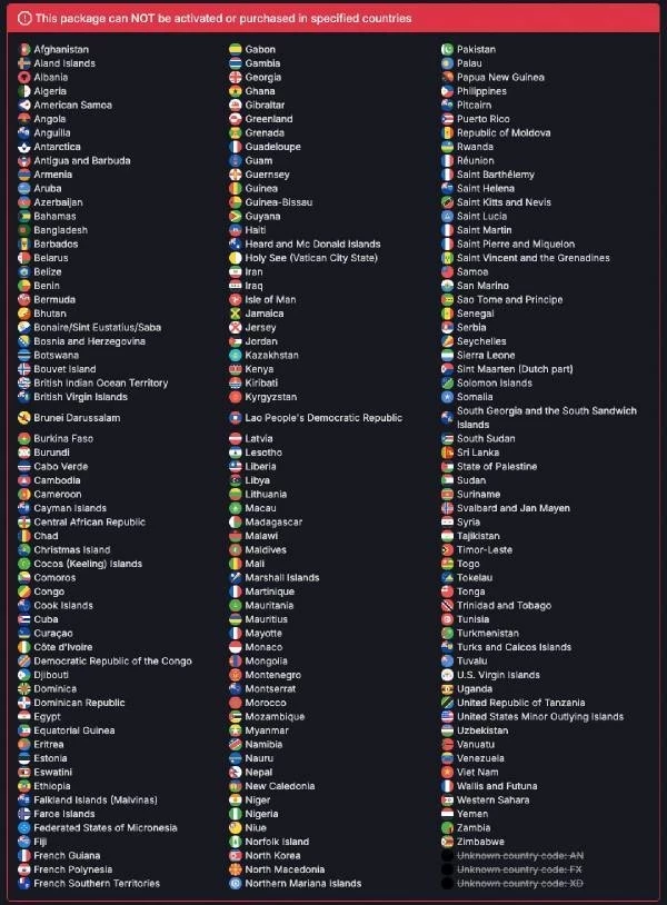 Здесь вы можете найти все страны, в которых игра больше не доступна. Это информация напрямую из базы данных Steam. И да, вчера игра была доступна для предзаказа во всех этих регионах.