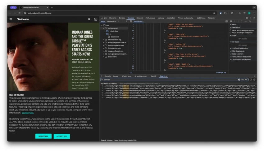 Упоминания The Elder Scrolls 4: Oblivion Remastered добавили на сайт Bethesda совсем недавно, так что «предсказания» о сроках выхода могут оказаться правдивыми. Данные из кода, связанные с тегами Google, обычно отправляют приложениям вроде Google Ad Manager перед запуском того или иного проекта.