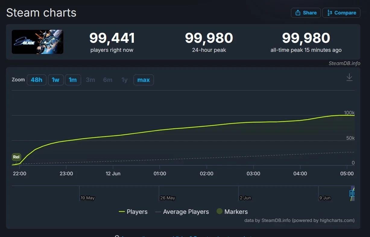 Stellar Blade — 99 980 игроков;