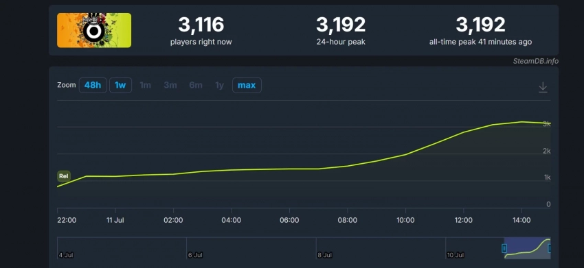 Пиковый онлайн составил 3192 человек. Не исключено, что он вырастит ближе к вечеру или на выходных.