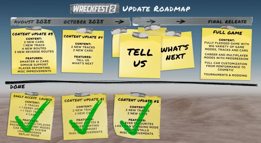 С полным списком изменений третьего контентного обновления можно ознакомиться на странице игры. Заодно была обновлена карта развития Wreckfest 2 в раннем доступе. Четвёртый крупный патч выйдет в октябре и привнесёт две новые трассы и пару тачек.